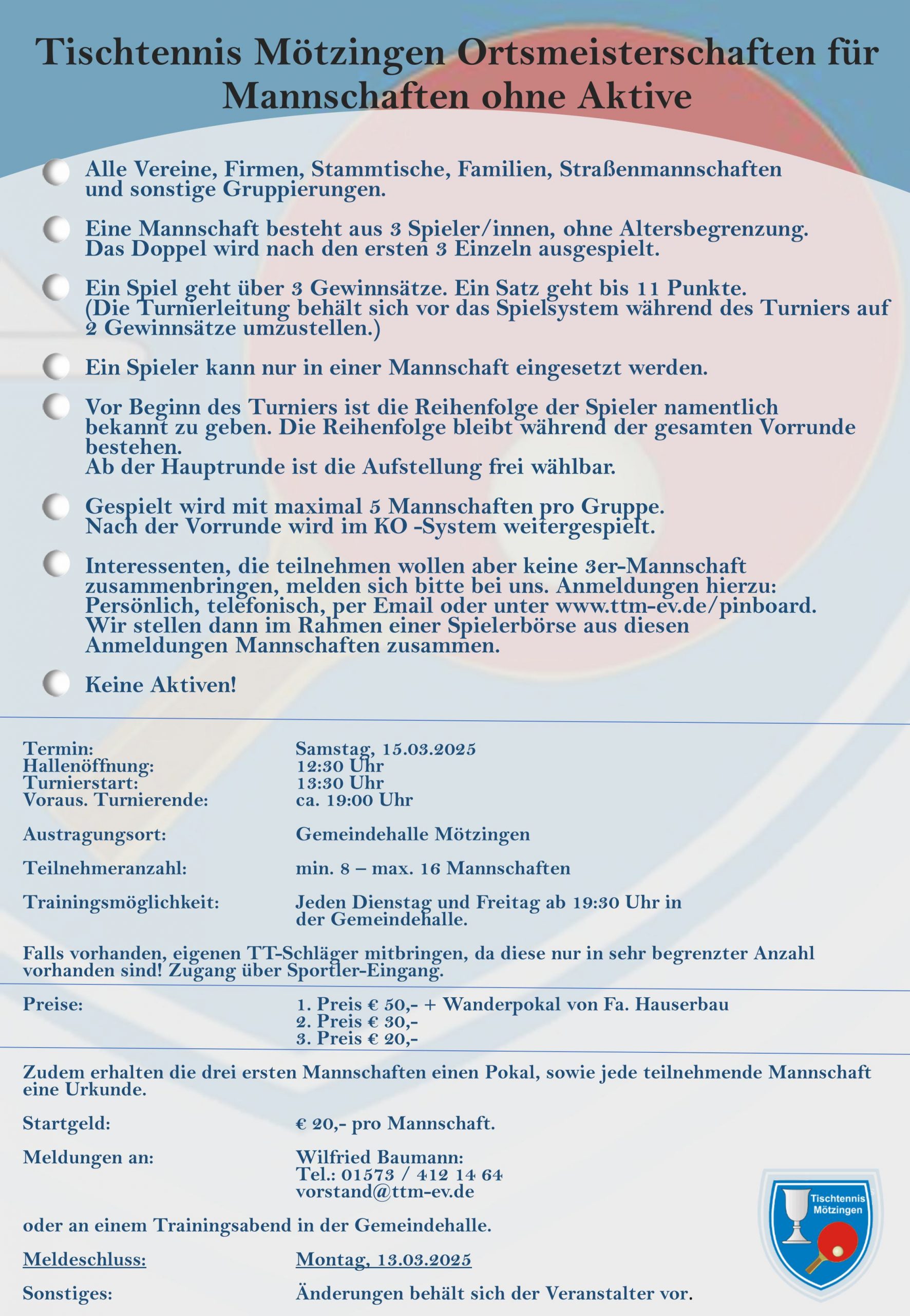 Ortsmeisterschaften 2025 – Einladung/Ausschreibung