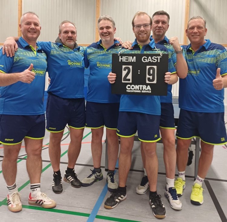 Als eher überraschender Tabellenzweiter mussten die Herren 1 zum Dritten und punktgleichen TSV Steinenbronn. Im Vorfeld war bei dieser Konstellation eigentlich trotz des deutlichen Hinspielsieges mit einem sehr engen Match gerechnet worden, zumal der Gastgeber dieses Mal in besserer Besetzung als in Mötzingen antrat. Wirklich spannend war das Spiel dann aber nur zu Beginn, als die H1 nach den drei Doppeln und den beiden Partien im vorderen Paarkreuz nur knapp mit 3:2 in Führung lagen. Für den ultimativen “Brustlöser” sorgte dann Joel Müller, der in seinem vielleicht stärksten Spiel für den TTM seinen hochfavorisierten Gegner im engsten Match des Abends mit 3:2 Sätzen besiegte. Danach war der Bann komplett gebrochen und die folgenden Spiele wurden allesamt klar mit 3:0 Sätzen gewonnen. So stand nach gut zwei Stunden schon wieder ein überraschend aber auch verdienter 9:2 Auswärtserfolg fest. Neben Joel Müller stach dabei aus einer guten Mannschaftsleistung sicherlich Stefan Haag mit seinen beiden Einzelsiegen im Spitzenpaarkreuz hervor. Damit hat die “Erste” zunächst den zweiten Tabellenplatz in der Bezirksklasse verteidigen können.